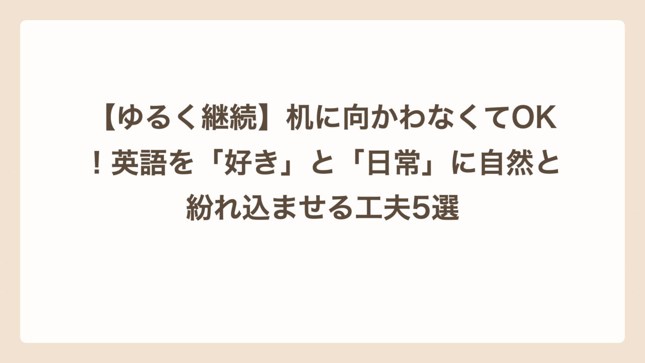 英語は 「勉強」として机に向かう時間よりも、「楽しみ」として好きなことや日常にくっつける と、続けやすいと実感しました。