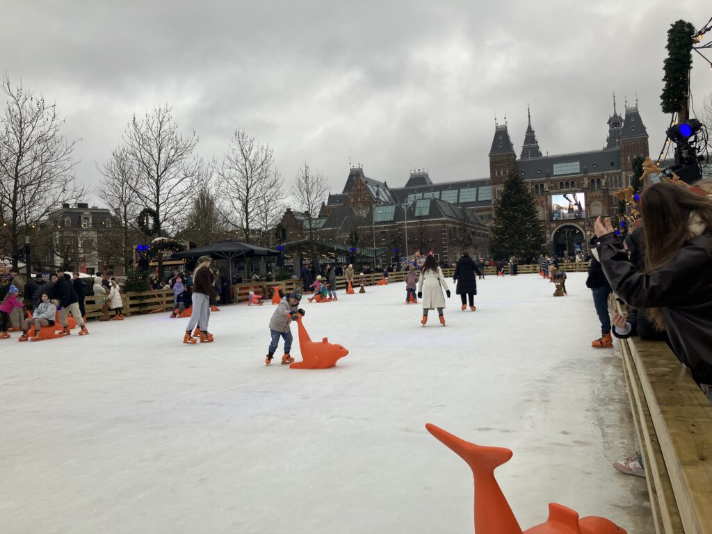 そして広場ではミニスケートリンクをよく見かけます。雨の日でも関係なくみんな滑っています。