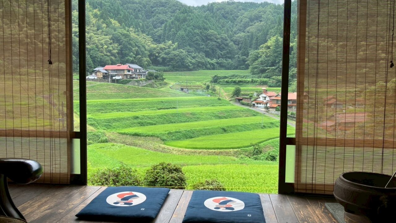 「蔵宿うずまき」は、山あいの静かな場所に建つ一棟貸切の古民家宿です。コンビニやスーパーはなく、周囲には棚田や田園風景が広がり、車で向かう道中も旅気分を盛り上げてくれます。