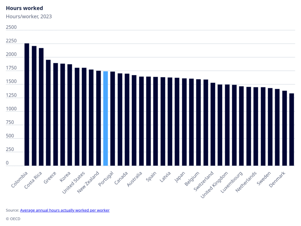 - OECD, Hours worked (indicator), 2024. oecd.org