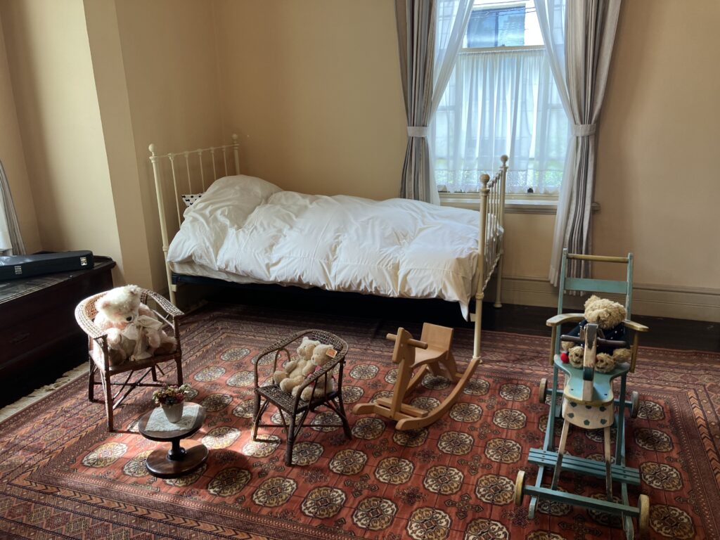 中は美術館になっていてヨーロッパの絵画や家具がずらり。庭に小さな展望台もあって、神戸の街並みを見下ろせるのが嬉しい。風見鶏の館と萌黄の館のクラシカルな雰囲気とは対照的に、こちらの館内は少しテーマパーク館もありました。